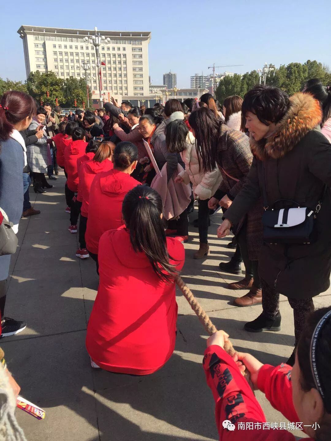 经城区中心校推荐,城区一小代表教育系统参加了此次拔河比赛。8:00整,时代广场的喷泉旁热闹非凡,教育、卫生、供电、食药、住建、环保、财政、林业、工信等51支代表队欢聚一堂。时代广场处处洋溢着一派欢乐振奋、昂扬向上的喜庆景象。